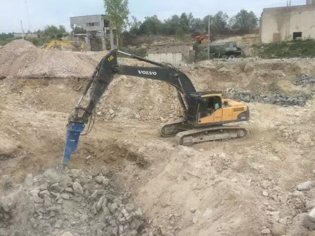 Технічні характеристики нашого екскаватора: вага 30 тонн, ківш 2,0 куб, гідравлічний молот 2.5 т, сила удару : 5000 Joule